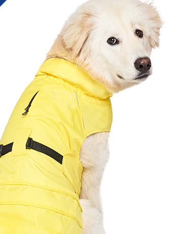 L'imperméable dynamique qui grandit avec votre chiot - s'étendant jusqu'à 2 tailles supplémentaires. le panneau arrière s'ouvre pour prolonger la longueur de la veste jusqu'à deux tailles supplémentaires. Panneau de poitrine extensible réglable et fermeture à boucle facile pour un ajustement réglable. Tissu hydrofuge durable pour garder votre chiot au sec et propre. Fente pour harnais zippée et détails réfléchissants pour une visibilité accrue.