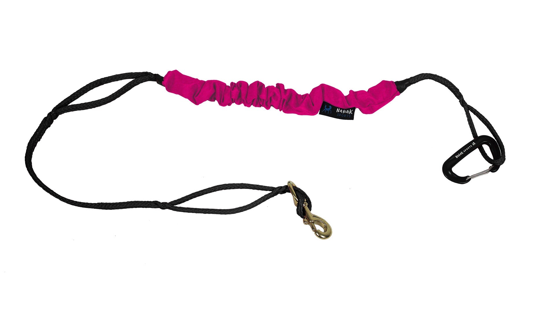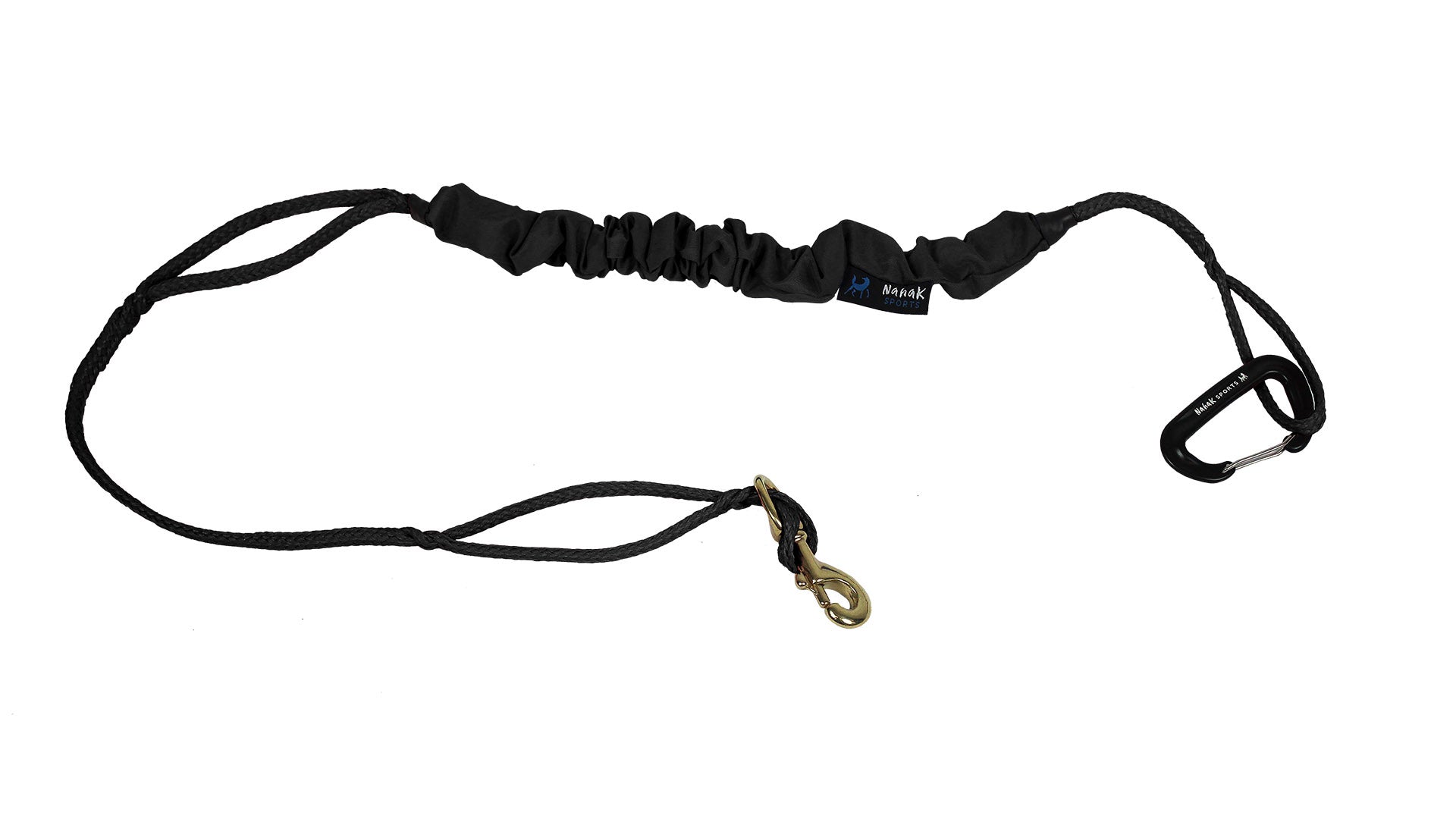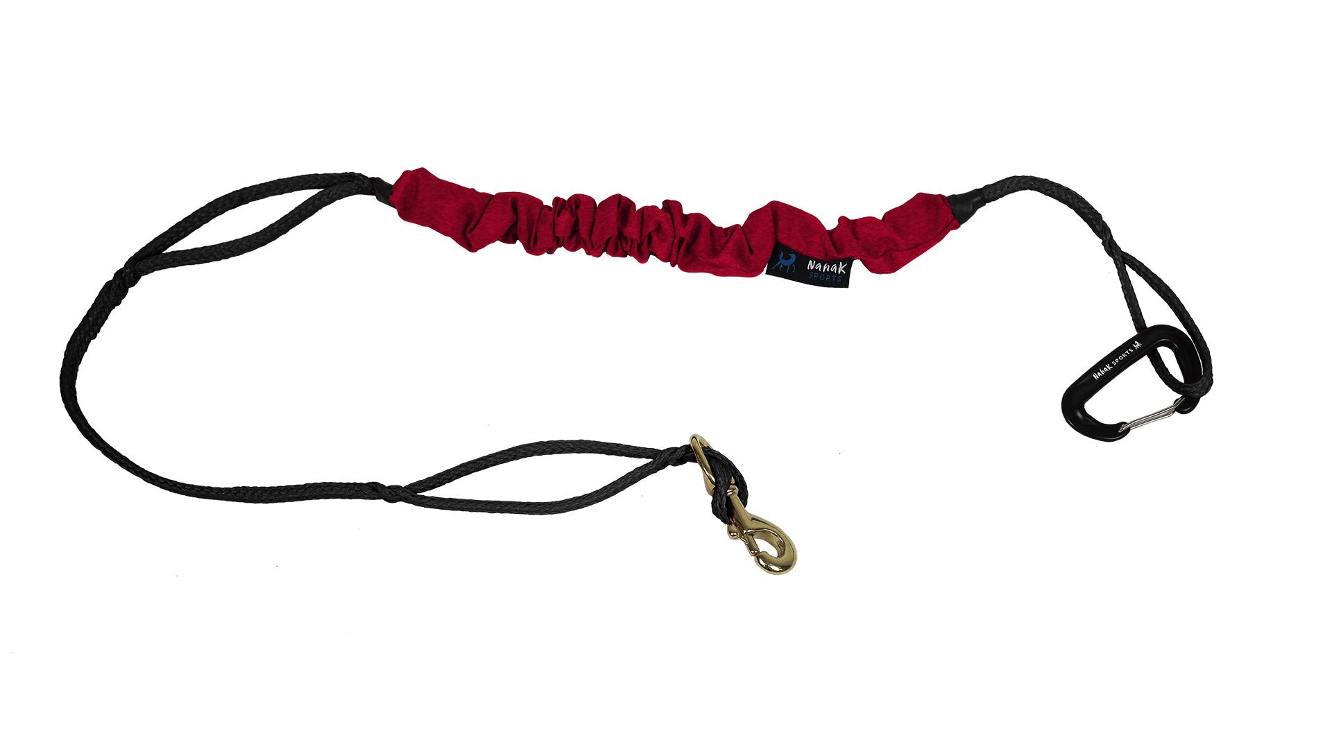 - Équipée d’un mousqueton en aluminium 1500 lbs pour l'attacher à l’anneau de la ceinture et d’un mousqueton en bronze pour la corde du harnais de votre chien
