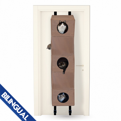 Our Hangin’ Kitty Condo is available in 2 sizes. 16 wide and also 24 wide. This unique patent pending design is so simple, yet so sturdy it will handle multiple cats playing, climbing and rough housing. The space saving design will be welcomed into any home