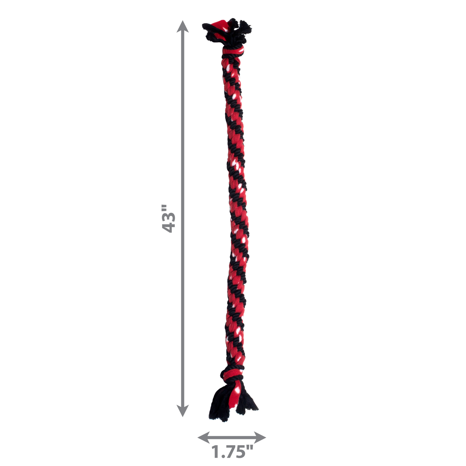Le jouet KONG Signature Dual Knot Rope est une tresse unique faite de coton et de tissu molletonné pour le plus grand plaisir de votre chien, ce dernier pouvant en effet l’étirer à volonté sans se faire mal. Fabriqué à partir d’un matériau solide, le jouet récompense encore davantage le comportement naturel de mastication de votre toutou tout en lui nettoyant les dents. Les deux nœuds représentent deux fois plus de plaisir pour tous les chiens car ils éveillent leurs instincts ludiques et les encouragent à tirer dessus sans se lasser.