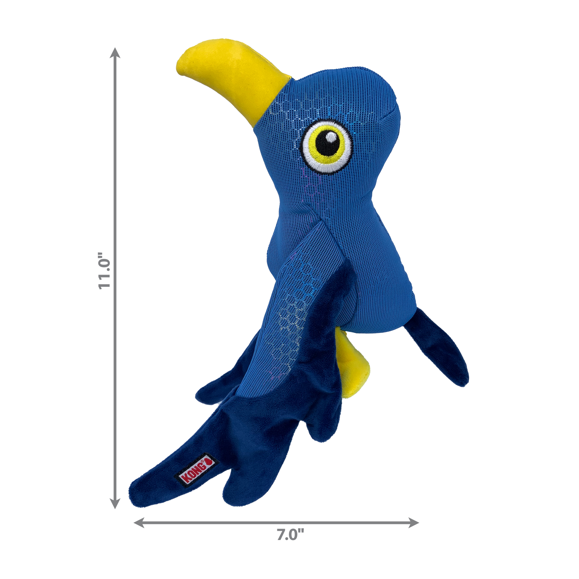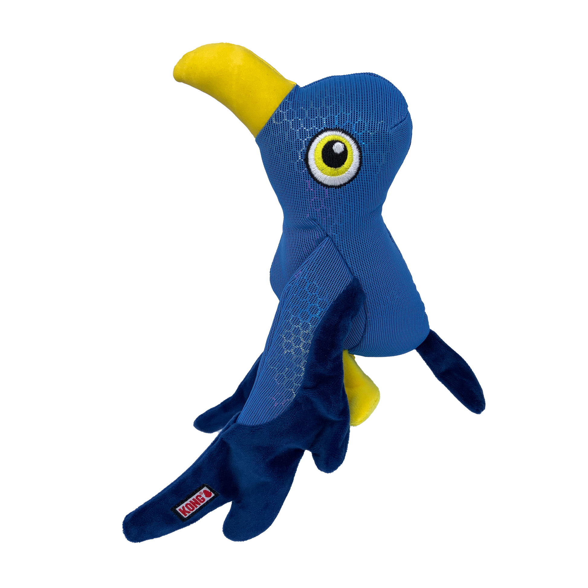 Les grandes ailes pendantes de KONG Shakers Shimmy Seagull incitent les chiens à secouer le jouet pour combler l’instinct. Du faux cuir, des textures brillantes et pelucheuses captivent les chiens tandis qu’un sifflet à chant grave et des crépitements les invitent à des secousses espiègles, et à des tonnes d'exercice bénéfique.