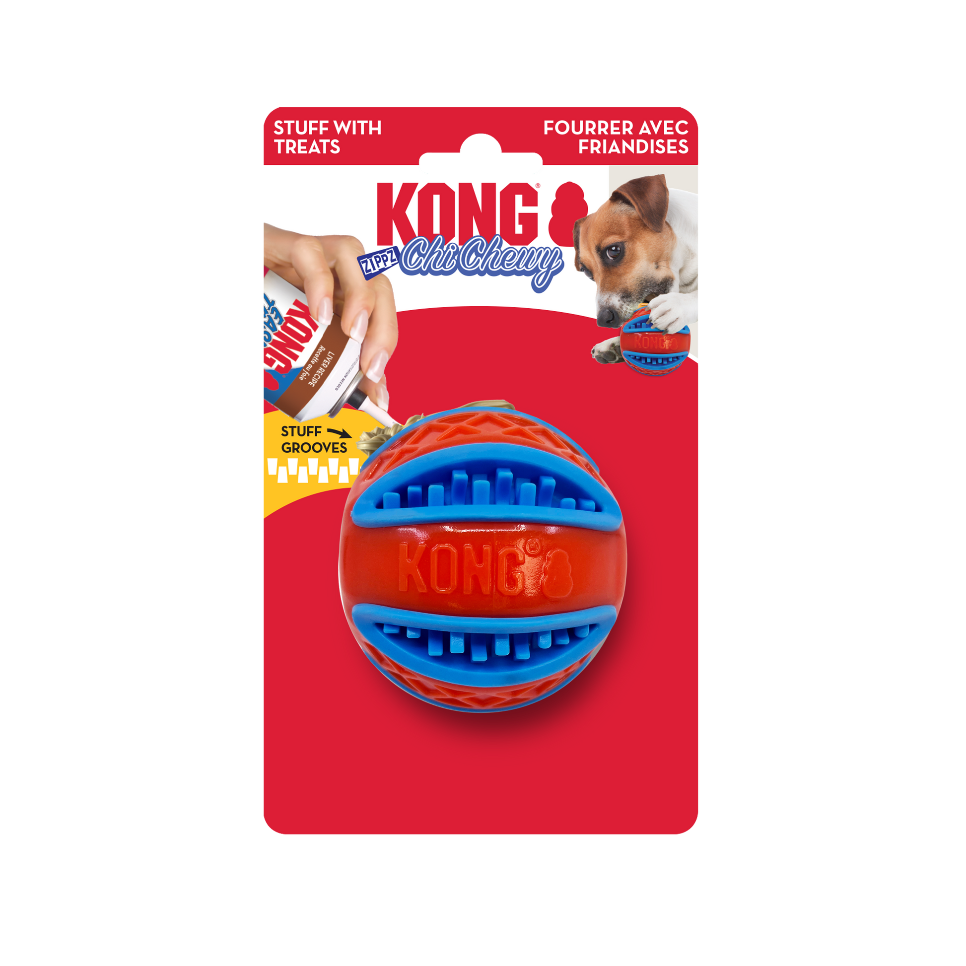 • Le jouet ChiChewy Zippz est disponible en forme de balle (taille moyenne et grande), de bâton (taille grande), d’anneau (taille petite) et d’os (taille moyenne).