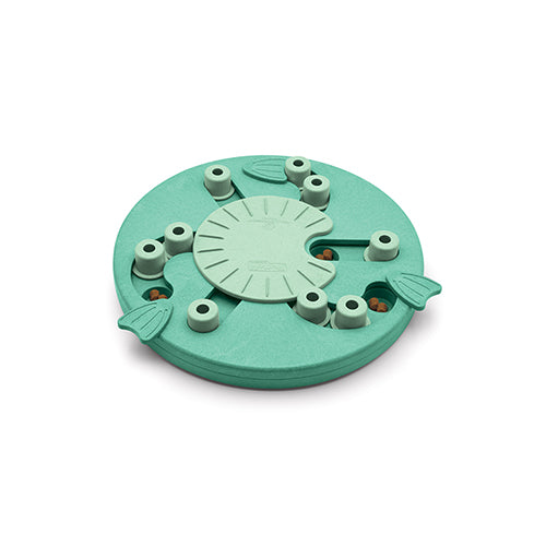 COMMENT JOUER : Placez les friandises dans des blocs circulaires et des compartiments dans la base. Pivoter les nageoires pour couvrir les pistes et verrouiller la toupie. Que les jeux commencent! Placez le jeu sur le sol et encouragez votre animal à chercher des friandises. Les chiens sont plus intelligents que vous ne le pensez. Parfois, nous avons juste besoin de leur apprendre! Faites pivoter les nageoires hors des pistes pour faciliter ce jeu et montrer à votre chien comment les blocs glissent.