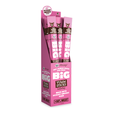 Etta dit ! Porc fumé à l'hickory Gros ! Les Yumm Sticks regorgent de saveurs et de protéines pour garder votre chien en pleine forme quelle que soit l'aventure qu'il entreprend. Ces friandises sont 100 % de qualité humaine, riches en protéines et faibles en gras. Chaque Yumm Stick est emballé individuellement pour une commodité facile lors de vos déplacements. Gardez-en à portée de main dans votre voiture, votre sac ou votre sac à dos pour une gâterie que vous pourrez apprécier tous les deux. Comme toujours, nos produits sont fièrement fabriqués et proviennent des États-Unis.