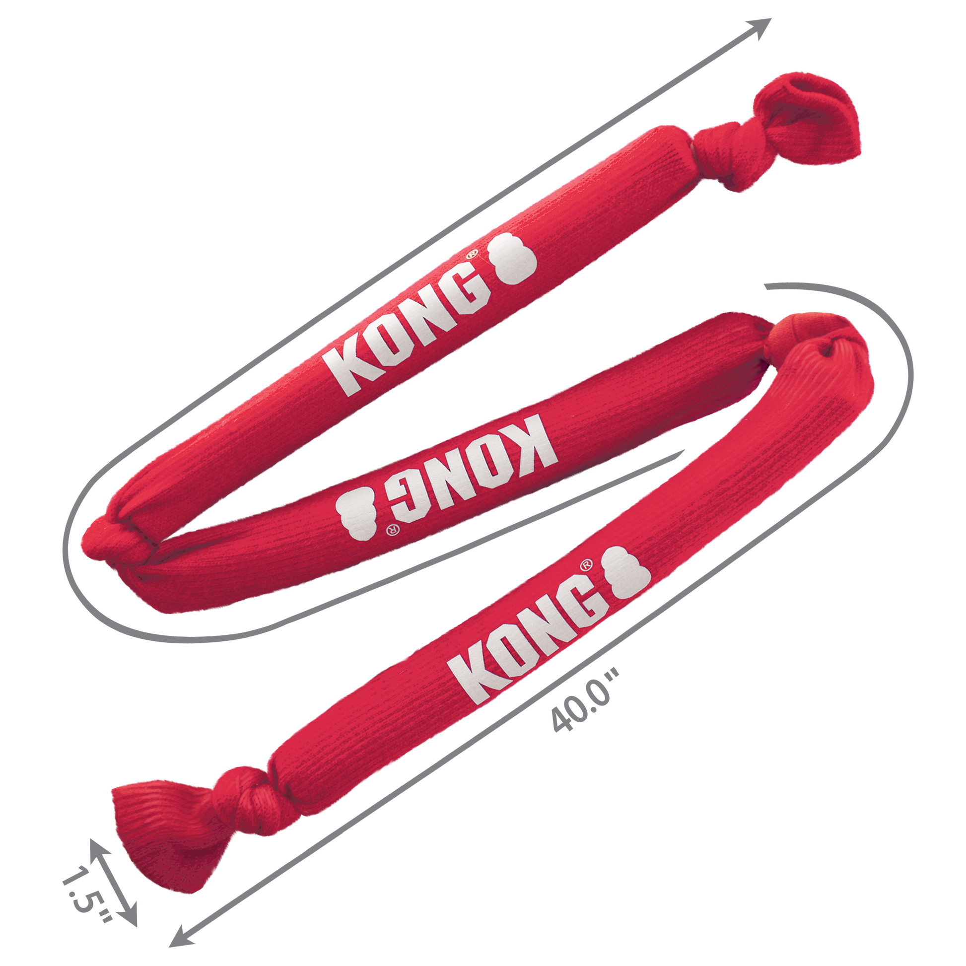 Le craquement irrésistible de KONG Signature Crunch incite les chiens à jouer. Ils s’amusent longtemps à tirer, à rapporter et à secouer ce jouet, ce qui satisfait leur instinct. Sa longueur de 91 centimètres rend le secouement naturel particulièrement gratifiant. L'extérieur qui rappelle la chaussette, éternel favori des chiens, s’étire pour un divertissement prolongé. De plus, sa taille est idéale pour une partie de lutte entre deux chiens!