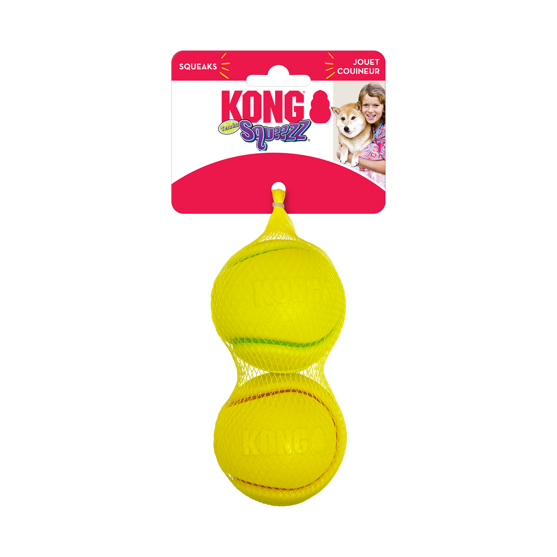 La balle KONG Squeezz Tennis émet un couinement sans pareil et est dotée d'un revêtement épais qui augmente la hauteur des rebonds. Elle satisfait les instincts de chasse de votre chien qui jouera inlassablement à la rapporter. Cette balle de tennis sans feutre est construite d'une pièce et son extérieur agrippant prolonge le jeu. Idéale pour le jeu interactif, cette balle encourage la participation des chiens et de leurs parents.