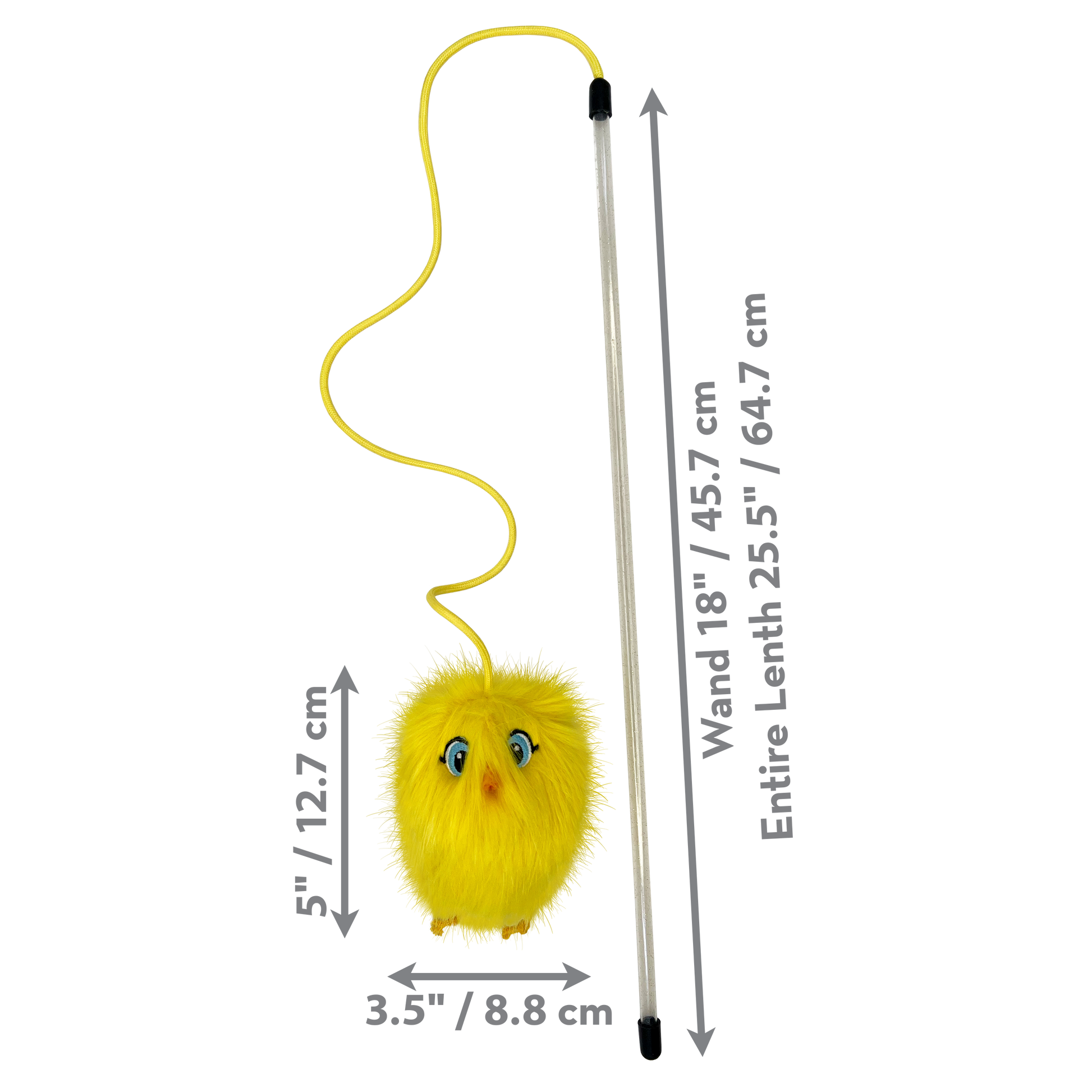 KONG Teaser Chirpz Chick est le jouet parfait pour partager un moment interactif avec votre chat ! Ce poussin " piaille " lorsqu'on l'agite ou lui donne des coups de patte. Son matériau interne crépitant, ses pattes pendantes et KONG Premium North American Catnip incitent à des parties de jeu énergique. Lancez, faites traîner et rebondir ce jouet taquin pendant que votre chat donne des coups de patte et mord le petit oiseau à son extrémité. Sa fourrure fournie irrésistible invite à la capture et à la lutte pendant que vous vous amusez ensemble. C'est l'accessoire idéal pour ajouter de l'exercice et renforcer les liens avec votre chat pendant sa routine de jeu habituelle.