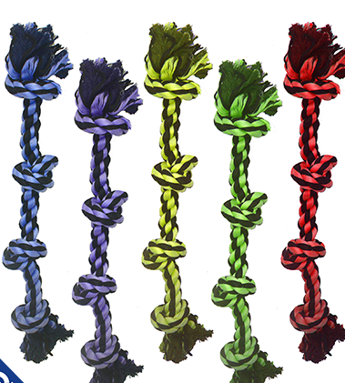 Le jouet en corde à 4 nœuds est disponible dans un assortiment de couleurs vives. C’est idéal pour les mâcheurs coriaces. Les propriétaires adoreront que ce jouet divertisse leurs chiens pendant des heures. Durable, résistant et interactif.